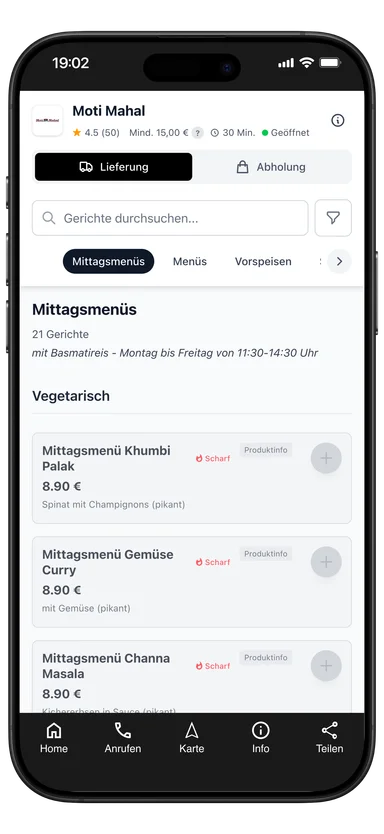 Mittagsmenü Lamm Madras